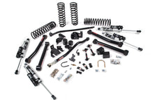 Easy to install bolt on performance suspension to handle the toughest off road trails and drive you home after. These J-Konnect Systems build off the base J-Venture to add J-Link lower control arms and other bracing for equal parts on-road handling and off-road capability and strength. These lower control arms not only add front caster and rear wheelbase, they are a serious upgrade to the strength over the factory control arms. Built 2” x .250-wall DOM tubing while offering better NVH isolation with large factory style rubber bushings at both ends. The integrate a drag bar flip kit to flatten out the steering angle for improved handling as well as provide front and rear track bar braces. These combined with the dual rate coil springs, adjustable track bar, quicker disconnects and more offer improved trail performance and strength while catering to on-road handling needs. Rounding out these kits are a set of FOX 2.0 Performance Series IFP shocks offer impressive on-road comfort and offroad performance featuring an aluminum body for faster heat dispersion.