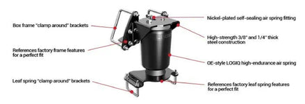 Improved Ride Quality, Stability, and Load Support - Competitor double-bellow style air springs have a natural frequency of ~2.5Hz (close to race car stiffness). LOGIQ Air Springs have a 1.6Hz natural frequency to ensure that you will feel the difference.