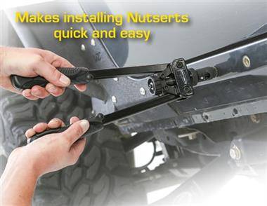 Makes installing nutserts quick and easy. Includes: Nutsert installation tool 3-SAE Mandrels 3-Metric Mandrels 2-Mandrel lock pins and Mandrel quick change tool. New "Quickchange head design allows for easy changing of mandrels and nose pieces. Unique spring loaded mandrel automatically locks the mandrel lock pin for the fastest mandrel changes on the market