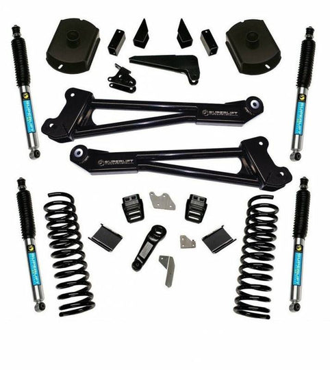 • Front lift includes 4 inch � coil springs, high clearance radius arms, track bar bracket, pitman arm, sway bar correction, bump stops, brake line brackets, Superlift, Bilstein, or Fox shocks, and all required hardware