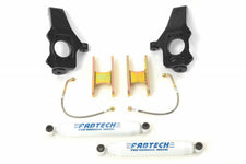 Fabtechs Spindle System for the new midsize Colorado and Canyon features a cast replacement spindle that directly replaces the OE unit for a fast install. System includes steering stops, front brake lines and a rear shackle system to level the vehicle.