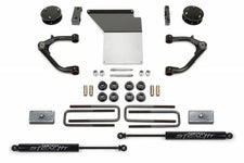 This system offers a mild lift height with easy installation for clearance of 33 tall tires on K1500s. Lift is accomplished by utilizing the factory front Coilover shocks with steel spacer system that helps retain the stock ride of the front suspension. The stock upper control arms are replaced with high quality tubular Uniball arms that allow unrestricted movement throughout the travel range. The arms are constructed of top quality material including .120 wall 4130 Chromoly tubing with a 1.50 OD and 1 FK Stainless PTFE Uniballs. These arms are the best on the market for aggressive offroad driving in harsh conditions. The front differential is relocated to keep CV angles proper with the new lift height while a 1/4 thick steel skid plate provides protection against offroad obstacles. Rear lift is accomplished with 1 1/2" rear lift block and u-bolts to help level the stance of the vehicles. Performance rear shock absorbers replace the stock units for increased damping.