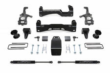 These 6? systems include heavy duty 1/4? thick steel lower control arm crossmembers with an integrated front differential skid plate for protection and increased front suspension strength. This is an important construction feature to properly handle large tires on and offroad. Fabtechs extended length ductile iron steering knuckles allow use of 18?, 20? or 22? wheels. The Basic System includes front spacers utilizing the factory Coilover shocks to retain the stock ride while the rear receives Fabtech Stealth monotube shocks.