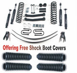 The Zone Offroad 4.5"" 84-01 Jeep Cherokee lift includes new front coil springs capable of handling anything! Since we design our coil springs for off road use, there is only a 2"" bump stop extension supplied to drastically increase wheel travel. Our coils can be smashed to the bottom and will always come back! No, that doesn't mean they are stiff. The key is using the correct size wire with the correct spring rate to offer the perfect ride and still hold up over time. Unlike many inexpensive kits on the market, our springs are made in the USA! New heavy duty lower control arms are supplied to correct alignment as well as axle location. The lower control arms are made from heavy wall tube and include factory like rubber bushings to absorb the road and offer increased flexibility. The rear is lifted via a new long add-a-leaf that's been designed and testing to hold up over the long haul without creating a harsh ride. Unlike many companies (that we won't name), our system comes with NEW REAR U-BOLTS! You never want to re-use a u-bolt! In addition to the add-a-leaf kit, a new greasable extended shackle is supplied to allow your springs to really flex. New Zone shocks are included in the kit that are valved specifically for the XJ.
