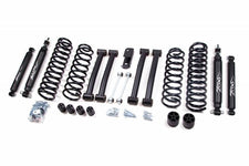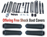 Prepare yourself for the perfect combination of off road performance and on road handling. This 4in ZJ system offers dramatic improvement in wheel travel and performance. The new massive lower control arms drastically inscrease the strength over stock, are formed to clear the mount for more wheel travel and correct front alignment. These arms feature rubber bushings to absorb the road and offer a degree of flexibility. This system comes with a transfer case drop as well as rear pinion cam locks that rotate the rear pinion for proper driveline angles. With 4in of lift, you can clear up to a 32in tire with room to twist as well as use your Jeep for a daily driver.