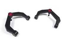 - Fully welded, heavy duty upper control arms that dwarf the factory arms.