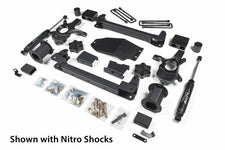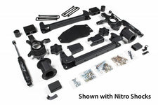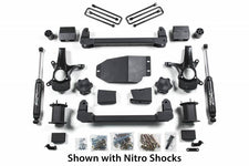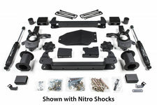 6.5in Strut Spacer Suspension System | 2007-13 Chevrolet 1500 Silverado & GMC 1500 Sierra 4WD pickups. Zone Offroad now offers a strut spacer alternative to our popular 07-13 6.5in replacement strut system. This new kit includes many of the same features as the current replacement strut kit but is geared more toward those that don't need the added performance of the replacement strut. The new strut spacer system still utilized the tried-and-true combination of ductile cast iron, precision machine steering knuckles along with 1-piece heavy duty crossmembers to help make the lift possible. A differential skid plate is included along with all the necessary differential and sway bar relocation brackets. The heavy duty, fully welded strut spacers bolt directly to the top of the factory strut and do not require disassembly of the strut. In the back, Zone Offroad only uses solid cast rear lift blocks as opposed to fabricated blocks and limits the height to 5in. If you need additional rear height, Zone offers a preferred add-a-leaf to fight spring wrap and yield additional height. Nitro rear shock option available.