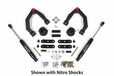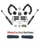 Zone Offroad Products 3.5in Adventure Series UCA Suspension System. Engineered to take advantage of the factory suspension design, this system offers smooth on road ride quality while increasing wheel travel when you hit the trails. This improves on our standard leveling kit with top mounted strut spacers, heavy duty upper control arms, bump stop extensions, sway bar and differential relocation brackets, rear shackles to level the stance and your shocks of rear shocks. At the core of this system is a pair of adventure series upper control arms (UCA). Our adventure series arms use a repositioned ball joint mount to provide greater range of motion for improved suspension travel. This corrects the ball joint binding issue common on stock control arms leading to premature wear of ball joints. The arms are constructed from 1/8in steel plate, boxed and fully welded with CNC machined ball joint and bushing cups. High quality MOOG ball joints come pre-installed and ready to handle offroad abuse. These ball joints are greaseable for easy servicing as well as far superior corrosion protection when compared to uniball style control arms. At the frame mount, the arms use factory style, durometer-specific rubber bushings pre-installed for quiet maintenance free. The arms come fully assembled, finished in a durable textured black powdercoat finish for quick, easy installation right out of the box. Also included in the 3.5in adventure series UCA system are a pair of top mounted steel fabricated strut spacers designed to provide the lift while retaining original ride quality. The top mounted design is simple to install and speeding up installation time by not requiring strut disassembly. With the increased ride height the factory bump stops are relocated with the supplied relocation brackets. Similarly the sway bar is relocated using drop brackets to retain an operating angle similar to stock. Finishing off the front of this 3.5in adventure series lift kit are differential drop spacers and longer hardware to keep the CV axle angles at a minimum while still allowing the use of the factory front driveline. For 2wd models these are not used. In the rear this kit uses a replacement shackle to provide 1in of lift to level the vehicle stance. Rounding out the rear are rear nitro gas shocks. Improve your Tundra's stance and performance with the new 3.5in Adventure Series UCA system from Zone Offroad.