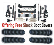 This 4in system features new front leaf springs that are designed to not only ride great, but will hold up to the abuse super duty trucks are made for. Progressively valved shocks are designed to increase offroad performance and provide excellent ride quality. A heavy duty track bar is used to center the front axle and makes the kit much easier to install than a track bar bracket system. A 3in block is supplied for the rear to level the vehicle. This is the easiest installation and best value on the market for a 4in system.