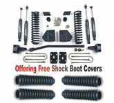 The revolutionary new Zone 4in system features new front coil springs that are designed to not only ride great, but will hold up over the long haul. A 1-1/2in solid steel track bar is included to properly center the axle after lifting. This track bar features new oversized, high-durometer urethane bushings for long term performance. The shocks were custom valved to work perfectly with the new Zone coil springs to increase off road performance while still offering unmatched on road ride quality. The rear kit comes with 5in blocks to replace your factory blocks so there is not stacking of blocks when you are in the Zone. This reduces rear axle wrap compared to other similar systems on the market. With the front replacement track bar and the rear block kit, this system is one of the easiest installations on the market for a 4in system.