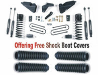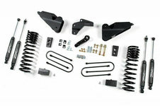 Zone Offroad 2013-18 Ram 3500 (Gas, Including 6.4L) 4in Suspension System. This new lift system utilizes heavy duty drop brackets to relocate the new factory Ram radius arms. The new relocation brackets tie into the factory radius arm mounts as well as additional support to the frame. This relocation corrects the suspension geometry to compensate for the 4in of lift provided by the progressive rate coil springs. Extended bump stops, dropped pitman arm, track bar relocation and brake line relocation round out the front components. The rear is lifted via a 3in block and u-bolts. For those looking for a lower rear stance, choose the 2in rear block kit.