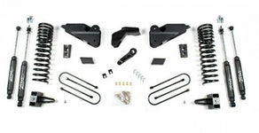 Zone Offroad 2013-17 Ram 3500 5.5in Suspension System. The newest Zone Offroad lift option for the new 3500 Ram follows the same design as the current 4.5in system. The system utilizes the same heavy-duty radius arm drop brackets to properly compensate for the massive 5.5in progressive rate coil springs. The supplied drop pitman arm, extended bump stops, track bar relocation bracket, sway bar drops and brake line relocation adjust all the rest of the critical components and angles. The rear of the truck is lifted via 5in rear blocks. For those looking to use their 4wd on the road at speed we highly recommend adding the optional t-case indexing kit to improve the front driveline angles. These two kits (for the 6-bolt and 8-bolt T-cases) come with a t-case indexing ring, front driveshaft spacer and heavy-duty replacement transmission crossmember. The t-case indexing kits can be installed when the lift is installed or anytime after if the need arises. The indexing kits will also work with other lift heights and brands for those customers in need of one.