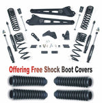 Zone Offroad 2014-18 Ram 2500 5.5in Suspension System. The newest Zone Offroad lift option for the new 2500 Ram follows the same design as the current 4.5in system. The system utilizes the same heavy-duty radius arm drop brackets to properly compensate for the massive 5.5in progressive rate coil springs. The supplied drop pitman arm, extended bump stops, track bar relocation bracket, sway bar drops and brake line relocation adjust all the rest of the critical components and angles. The system coupled with Nitro shocks, provides a great handling, smooth ride suspension system. The rear of the truck is lifted via 4.5in rear coil springs. For those looking to use their 4wd on the road at speed we highly recommend adding the optional t-case indexing kit to improve the front driveline angles. These two kits (for the 6-bolt and 8-bolt T-cases) come with a t-case indexing ring, front driveshaft spacer and heavy-duty replacement transmission crossmember. The t-case indexing kits can be installed when the lift is installed or anytime after if the need arises. The indexing kits will also work with other lift heights and brands for those customers in need of one.