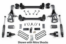 Choose the Zone Offroad 6in Suspension System to lift your 2014 Ford F150 and clear up to a 37in tire. A 3-point differential mounting system drops and rotates the front differential to bring the CV shafts and driveshaft back to factory operating angles. Visually compare the Zone Offroad porterhouse knuckles to the chuck roast of the competition. Salivate over the fully cast, CNC machined, and resonant frequency tested knuckles that correct the tie rod and ball joint geometry with no track width change. Heavy main crossmembers are included with your meal and are locked solid with a differential skid plate. Choose your side of rear shock, and we'll fill in the rest with a 5in dual pin block kit that offsets the axle closer to the center of the wheel well compared to a standard setup. This kit is all inclusive, so don't look anywhere else, install a Zone Offroad system on your F150 and have no regrets.