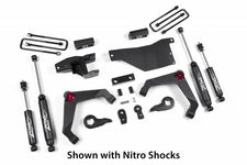 Zone Offroad 2001-2010 Chevy GMC Heavy Duty 3"" Adventure Series Lift System. This new addition to the Adventure Series lineup of lift systems is built around the Zone Offroad heavy-duty replacement upper control arms already 10 for the 01-10 2500/3500 platform. The arms are made from 3/16"" steel that is precision laser cut, formed and fully welded. Preinstalled MOOG brand ball joints and rubber bushings provide an easy installation and long service life. The ball joint is repositioned to compensate for the added lift and maintain a neutral position at ride height. To complement the improved upper ball joint angles, the kit address the other area often ignored at this lift height - the CV shafts. The new Adventure Series kit for the 01-10s includes a full differential drop system that relocates the differential down 2"" for near stock angles at the 3"" lift height. This is accomplished with a drop spacer on the passenger's side, (2) drop brackets for the front driver's mount and a integrated ""half crossmember"" for the driver's rear mount. A new different skid plate is included to protect the differential in its new position. The rear is lifted via a 2"" block and u-bolts.