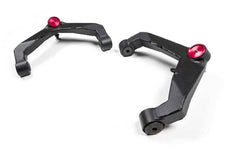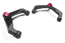 Zone Offroad Heavy-Duty Upper Control Arm Kits. The new upper control arms provided in these kits are direct replacements for the factory arms. Made from fully weld 1/8"" steel plate construction as well as CNC machined ball joint and bushing mounts, these arms dwarf the factory components. In addition to overall strength of construction, these new arms trump the factory components by providing more range of motion. This feature benefits multiple suspension setups from simple leveling kits to full replacement steering knuckle-style suspension systems. The arms utilize high quality Raybestos brand ball joints that can handle heavy duty use and work in conjunction with OE-style rubber mount bushings to provide a quiet ride. The ball joints are greaseable and easily replaced with readily 10 parts at the end of their service lift. Proper brake line attachment points are included on the arms where needed for a factory-like fit.