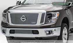 2016-2016-2019 Nissan Titan Nissan Titan Billet Grille Insert/Bolt On - 3 Pc Polished Car customizers have been installing Billet Grilles on custom cars, lead sleds, and street rods for decades. Its a traditional modification that personalizes the vehicle and sets it apart from the cookie cutter sameness of factory original. A Billet Grille tells the world that youre not satisfied with ordinary, and a T-Rex Billet Grille announces that when you go custom, you go first class. T-Rex Billet grilles are the standard worldwide for design and quality. They start with advanced CAD engineering and design, followed by rigorous testing for fit, finish, and durability. Once the design is approved, the finest aircraft quality 6061/6063 Billet Aluminum is used to produce the grille using state-of-the-art manufacturing techniques, like a custom jig for laser cutting materials, precision TIG welding, and meticulous assembly and quality control. The completed product is then finished in durable Sinister Black powder coating, or electro-polished to a high gloss finish.