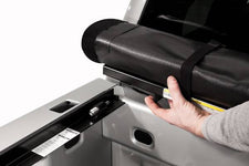 The Lo Pro QT Rollup Tonneau Cover mounts on the inside of the bed for a sleek appearance on any truck. Installs in minutes with the pre-assembled, quick-attach installation system. Bows conveniently roll up within cover for easy storage. The patented spring tensioner self-adjusts to keep the cover tight in fluctuating temperatures. Great looks in any climate!