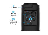 The TYPE S POWERGEN 500 is a portable gasless generator capable of powering and charging your favorite mobile devices, accessories, tools, and appliances on-the-go, or at home when the grid goes down. This high-capacity, 500Wh power station can even charge your 6V or 12V vehicle battery. Equipped with dual 120V outputs, four fast-charge USB-A ports, two USB-C power delivery ports, and a 12V socket, the POWERGEN 500 clearly displays run / charge times and battery status on the digital LCD. For added power, daisy-chain multiple power stations using the included MC4 cable. Recharge the POWERGEN 500 through the AC, 12V, or solar inputs (solar panel sold separately). Conveniently store the power adapter or other items within the integrated storage compartment. Have peace of mind knowing that the POWERGEN 500 is your emergency backup power supply on the road or at home.