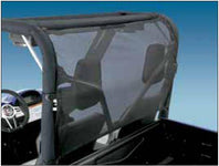 Description: This optional VDP Soft Mesh Wind Stopper keeps the wind & dust off your back. Creates a shaded enclosed environment! Enjoy looking out with out others looking in. Constructed of a durable UV treated mesh fabric specially designed to shade the sun and heat while letting the cool breeze through. Easily attaches with Velcro straps.