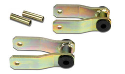 This unique suspension system comes complete with lock nuts, polyurethane bushings, drilled sleeves (where needed), and hardened bolts with greaseable fittings. Similar to our Leaf Spring Shackles, kits contain all of the hardware needed for an easy installation, for an immediate lift to clear oversize tires. Our shackles allow a lift from ½” to 2½” depending on the application. Kits come in pairs and are available in either hammertone gray or gold zinc finishes.