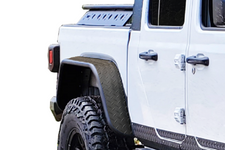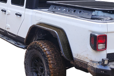 Designed to replace the original flares, Warrior’s new Rear Tube Fender Flares mount into the existing fender wells with minimal or no drilling. Constructed of 1.5" steel tubing, these beefy frames are a perfect complement to our Tube Doors and Platform Roof Rack built for the JT. The outer mounting and frame of the flare comes in a black powder-coated finish while the flares’ top plate comes in four varieties to match other Warrior Body Armor. They're available in Polished Aluminum Diamond Plate, Black Powder Coated Aluminum Diamond Plate, Smooth Black Powder Coated Steel, and a Raw Uncoated Finish; for paint matching purposes. All fender flares are sold in front and rear pairs.