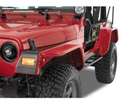 Designed to replace the original flares, Tube Flares mount into existing fender wells with minimal drilling. Constructed of 1-1/2" tubing, these beefy frames are a perfect complement to our Tube Doors. The flares top plate comes in three finishes to match other Warrior Body Armor: aluminum and black powder-coat treadbrite, and 12-guage steel. An optional LED signal light can be incorporated into the leading edge of the front flare, complete with wiring harness for an easy installation. Lights sold separately. Black powder-coated to provide a durable finish and paintable. Available in pairs: fronts or rears.
