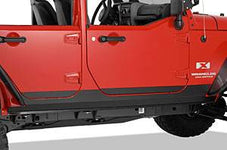 Sideplates protect the rocker panel area below the door and enhance the appearance of the vehicle too. Models such as Cherokee and tall sides for JK Wranglers extend up onto the doors as well. Available flat or with a 90-degree bend (lip) that wraps under the rocker panel 1, Sideplates are sold in pairs.