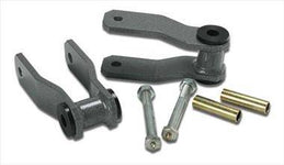 These MIG-welded, jig-built, Spring Shackles come complete with all the mounting hardware required for an easy installation. Shackle Kits lift one end of the vehicle from 1/2 up to 2-1/2, depending on the application. Kits come in pairs and are available in either hammertone gray or gold zinc finishes.