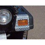 Fits 1987 to 1995 YJ Wrangler Aluminum diamond plate Tip covers Sold as a pair. These covers protect against and cover ugly rock chips that speckle front fenders, as well as progice protection from tree and shrub limbs when off-roading. Sold in pairs, these covers have cutout for factory signal lights (where applicable).
