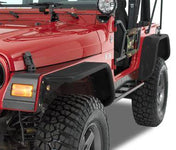 Designed to replace the original flares, Tube Flares mount into existing fender wells with minimal drilling. Constructed of 1-1/2" tubing, these beefy frames are a perfect complement to our Tube Doors. The flares top plate comes in three finishes to match other Warrior Body Armor: aluminum and black powder coat treadbrite, and 12-gauge steel. An optional LED signal light can be incorporated into the leading edge of the front flare, complete with wiring harness for an easy installation. Lights sold separately.