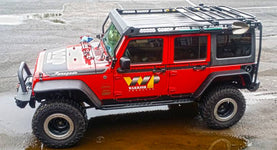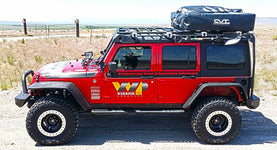 Full line of accessories available, including: No-Drill Spare Tire Mount, Off-Road Jack Mount, and Shovel / Axe Mount (Coming Early 2017).The Warrior Products 2007 ? 2017 Jeep Wrangler JK MOD Rack is the newest addition to the Warrior Roof Rack product line for Jeeps. This unique design offers unprecedented strength combined with functionality; truly rounding out the most versatile roof rack in the aftermarket industry. Compatible with both soft and hard tops, and giving complete access to the freedom panels, the MOD Rack provides a massive load capacity for even the heaviest cargo. The integrated wire loom management in the side rail gussets allows for off-road lighting/CB Radio wire organization and protection, while the side rail accessory mounting system offers a fully configurable solution for carrying off-road jacks, LED light boxes, axes, and shovels. In addition, the removeable platform can be used for multiple tasks; including: table, stretcher, clothes drying rack, roof top tent, Yakima/Thule accessory mounts, and more. The integrated front Air Dam both increases aerodynamic efficiency, and provides a large, secure mounting surface for LED Light Bars and cubes.