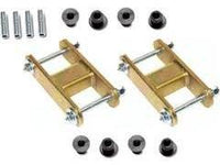 This unique suspension system comes complete with lock nuts, polyurethane bushings, drilled sleeves (where needed), and hardened bolts with greaseable fittings. Similar to our Leaf Spring Shackles, kits contain all of the hardware needed for an easy installation, for an immediate lift to clear oversize tires. Our shackles allow a lift from ½” to 2½” depending on the application. Kits come in pairs and are available in either hammertone gray or gold zinc finishes.