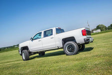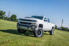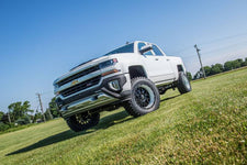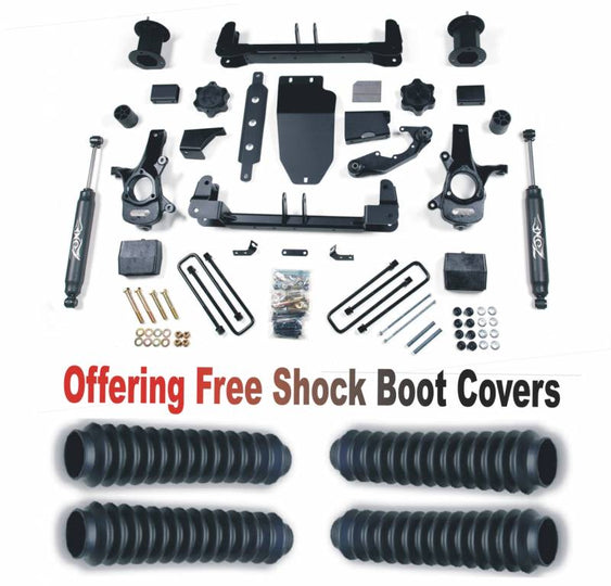 FMVSS No.126 (ESC system test) Compliant - With the popularity of Zone's 6.5in lift kit for the 07-13 GM trucks, the engineers at Zone Offroad Products have designed the new 2014-17 kits to retain many of the great features customers have comes to expect with fitment for the new electronic power steering on the 2014-17 trucks. The system includes a pair of fully boxed heavy duty crossmembers and robust ductile iron steering knuckles engineered to work with the redesigned steering. A 3-piece differential relocation system is utilized to correct front pinion angle with the center differential brace tying front and rear crossmembers together for a sturdy differential mount. This coupled with the differential skid plate and crossmember brace create an incredibly strong front subframe designed to correct suspension geometry while increasing ground clearance. To retain factory ride quality a pair of bolt-on strut spacers are used to provide lift. These install easily without the need to disassemble the factory strut. Also included in the kit are a pair of CV spacers, brake line brackets, sway bar relocation, and all the necessary hardware to complete the install. To lift the rear and level the stance a 5in flat block is utilized along with longer u-bolts, brake line bracket and nitro shocks. As with all Zone Offroad Products, this 6.5in lift kit for the new 2014-17 Chevy/GMC 1500 trucks is backed by a limited lifetime warranty.