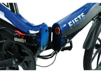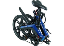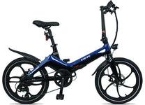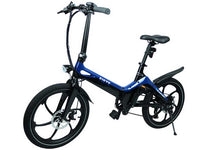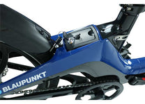 Sleek, durable, single die-cast foldable magnesium frame with no unsightly soldering joints. Portability at only 47 lbs, with an intelligent quick-release mechanism for easy storage, foldable pedals, and handlebar. Blaupunkt 36V 350W rear wheel hub motor, 50 Nm torque and maintenance free. Magnetic closure system to securely keep the bike folded during transportation. Roller blade-style wheel at the bottom of the folded frame for enhanced portability. High-quality disc brakes for reliable stopping power.6-speed Shimano SIS circuit for smooth gear shifting.20-inch puncture-proof 2.125 tires for worry-free rides. Pedal assist with a 3-stage control, adjustable via the LCD bike computer, reaching speeds up to 32 km/h (20 mph).Throttle assist control conveniently located on the hand grip, allowing speeds up to 20 mph (32 km/h).Li-ion battery with a capacity of 36 V/10.5 Ah, ensuring a short charging time. Removable and lockable battery case located inside the frame