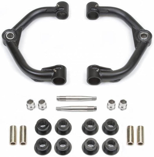 - Arms eliminate factory upper ball joint w/ super strong 1" ID Stainless Steel American Uniball for increased suspension strength