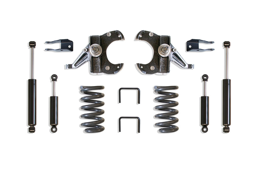 - Includes 2.5" Lowering Spindles (Part# 101125L), 3" Front Lowering Coils (Part# 251130), 5" Rear Flip Kit (Part# 301150), Front Shocks (Part# 1200Ll-0 X2), Rear Shocks (Part# 2000Ll-4 X2) & Rear Shock Angle Corrects (Part# 401100)