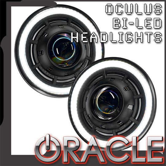 Introducing the all-new Oculus Bi-LED Headlamp system by Oracle Lighting. Featuring advanced LED projection with 4,800 Lumens of high-quality illumination for enhanced driver visibility in all weather conditions. The LED light source has lower power demands compared to the factory lamps while providing more light output.