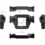 All Rock Tamer mudflap systems can easily be taken on and off, use it when you’re towing and remove it when you’re not. One inch of space is required on the ball mount for fitment. Overall width of the 00110 is adjustable from 67 3/4″ to 97 1/4″. Mudflap dimensions are 24 x 24″ and they can be trimmed to maintain consistent ground clearance when towing various loads. Features forged aluminum hub and adjustable arms, stainless sleeved steel rods, UV protected matte black finish and stainless/zinc nickel hardware. Includes one 00110, 2 Rock Tamers trim plates, 13 bolt bumpers and a detailed manual instructions in English and French included. PROTECT WHAT YOU TOW!