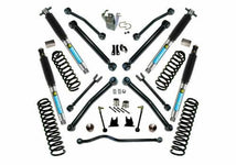 When it comes to ride quality and performance, our lift kits deliver the product quality, durability, craftsmanship, and performance that Wrangler JK owners are looking for. During live vehicle testing, we ensure that the optimum ride and handling performance was incorporated into the design of this lift kit. The REFLEX series control arms feature dual offset forged ends that are encased with our REFLEX bushings to create the most advanced combination of off-road performance and on-road handling characteristics ever offered. Our REFLEX series control arms improve ride quality by reducing noise, vibrations, and harshness (NVH). The REFLEX bushing is a superior design over an OE rubber or poly bushing. The REFLEX bushing offers the articulation of most common inch œflex inch � joints but without the road vibrations and noise that can occur. This direct bolt on kit also includes our REFLEX series adjustable front track bar to keep the axle aligned and the track bar and drag link in sync. Superlifts 4 inch � lift kit allows for 35" Tires with stock fenders and 37" tires with flat aftermarket fenders. Optional components available are; single and dual steering stabilizers, both in the Superlift and Bilstein stabilizer cylinders, front sway bar disconnects, Bulletproof hoses, and an adjustable rear track bar.