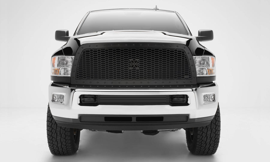Stealth Laser X Grilles add a modern update to the traditional X-Metal Grilles with the upgraded laser cut steel 1-piece construction and blacked out design. The main grille design features a unique repeating €œHoney Comb€� pattern and the black X-Metal studs and badging are prominently displayed on the black powdercoated mild steel. Laser X Grilles are available with chrome studs as well (Laser X Series). Our uncompromising quality begins with advanced 3D CAD supported engineering and design. All our products undergo rigorous testing for fit, finish, drivability and durability. Each part starts with a custom jig using laser cut materials, precision TIG welding and meticulous assembly and quality control. This dedication of American craftsmanship shows in every product that leaves our facility in California. All our black powder coated grilles go through a multi-stage process, first they are sandblasted to prepare the surface for our epoxy primer base coat. Second, they are cleaned to remove contaminants from the sandblast process. Then an epoxy primer base coat is applied and cured to seal the entire surface, finally the color top coat is applied over the primer and cured to provide long lasting protection and a high-quality OEM finish.