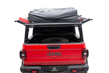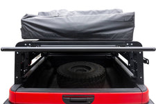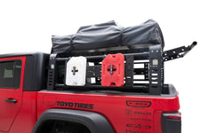 The ZROADZ Overland Truck Bed Rack is the first truck bed accessory mounting system engineered with bed access doors designed for lighter, larger accessories that are more efficiently stored in a way that does not take up valuable bed space and can be easily moved out of the way to gain access to the bed of your truck. Spare fluid containers, traction pads, or any items weighing up to 30 lbs. can be mounted and lifted out of the way on the aluminum door frames. Hybrid heavy gauge steel and aluminum construction give this truck rack the ultimate load carrying capacity.